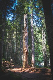 Nous décidons d'emprunter le sentier de 3,5km qui fait le tour des deux lacs, bien entendu d'autres randonnées sont possibles dans les alentours. La majorité de la promenade se fait dans cette magnifique forêt et heureusement, car le soleil tape aujourd'hui ! Nous prenons notre temps et profitons de la quiétude de cet endroit pour nous ressourcer et emmagasiner toutes les énergies que nous offre cette belle nature. Un peu plus loin, nous trouvons un petit coin pour savourer notre délicieux petit sandwich fait maison avec quelques tomates et poivron comme crudité tout ceci dans un décor serein.